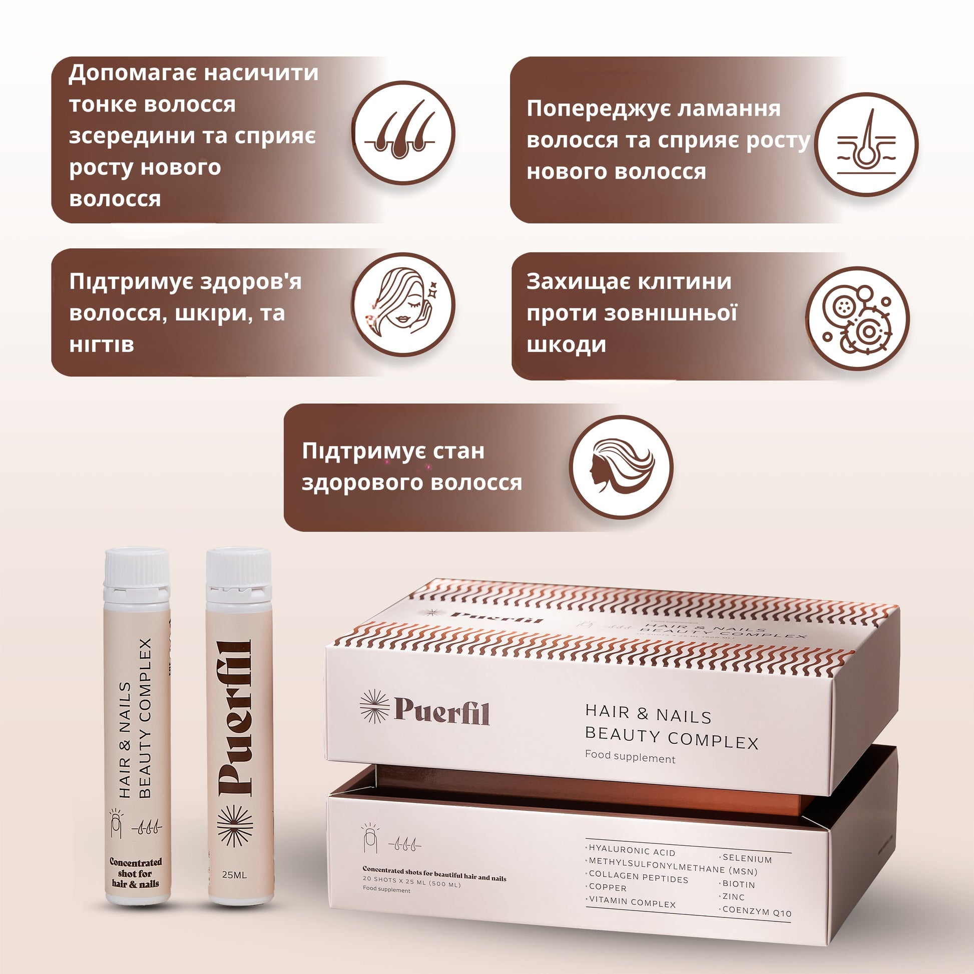 Water, cherry juice concentrate, fructose, hydrolysed fish collagen, L-carnitine, acidity regulator: citric acid, green tea (Camellia sinensis) leaves extract 20:1 (100mg Catechins), bearberry (Arctostaphylos Uva-ursi) leaf extract 4:1, dandelion (Taraxacum officinale) root extract 4:1, L-ascorbic acid (vitamin C), L-choline bitartrate, inositol, L-tyrosine, cherry flavour, preservatives: potassium sorbate, sodium benzoate; nicotinamide (niacin), DL-alpha-tocopherol (vitamin E), hyaluronic acid, calcium D-pantothenate (pantothenic acid), coenzyme Q10, riboflavin (vitamin B2), pyridoxine hydrochloride (vitamin B6), thiamine mononitrate (vitamin B1), chromium picolinate, retinyl acetate (vitamin A), D-biotin, cholecalciferol (vitamin D), cyanocobalamin (vitamin B12).| NUTRIENTS | Daily dose 25ML | NRV*,% |