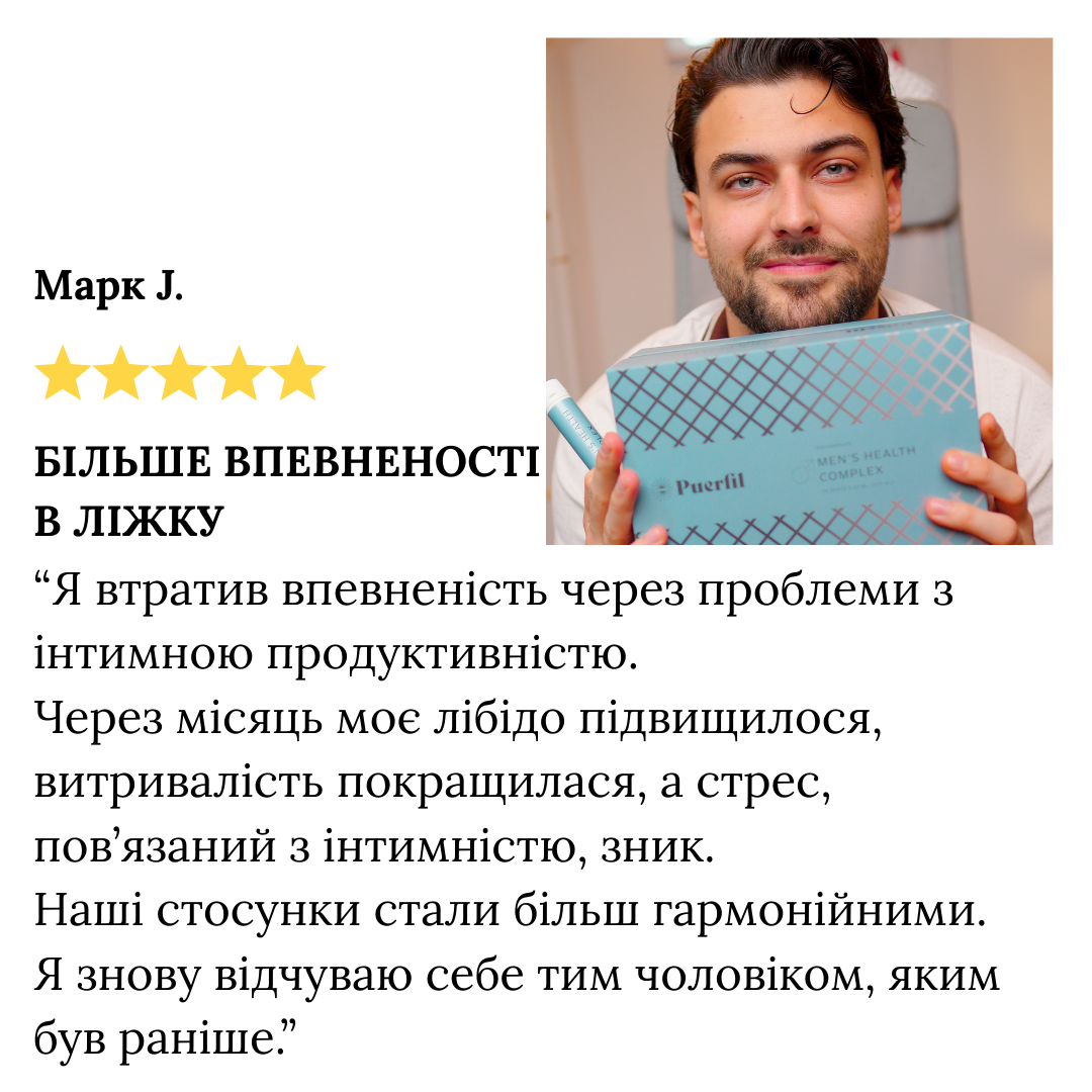 PUERFIL MEN'S HEALTH COMPLEX МІСТИТЬ 20 СПЕЦІАЛЬНІ ІНГРЕДІЄНТИ