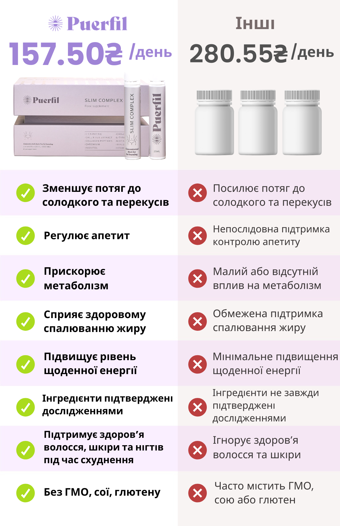 Puerfil Slim Complex у порівнянні з іншими засобами для схуднення
